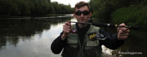 Kijek otrzymałem od Waldka Ptaka 2 miesiące temu. Dotychczas towarzyszył mi nad wodą kilkukrotnie. Początkowo miałem zagwozdkę w doborze lekkiego kołowrotka, ponieważ młynki przez mnie najczęściej stosowane przy wędkach kleniowych ważą powyżej 250 g. Natomiast lekki jak piórko CXT MicroSpecial waży zaledwie 90 g. W tej sytuacji idealny byłby kręciołek klasy 1000-2000, z masą poniżej 200 g. Tymczasowo postanowiłem go zastąpić Dragonem Nano Lite FD1020i. Podczas długiego, intensywnego spinningowania masa całego zestawu odgrywa niebagatelne znaczenie – zachowujemy siły i dobrą kondycję, mniej nadwyrężamy mięśnie i stawy dłoni, przegubu i łokcia.