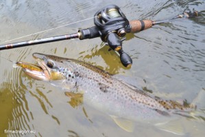 Wiedzieli, co Bulhead będzie robić. Najpierw szybko zanurkuje dzięki swojemu długiemu sterowi. Potem, gdy już będzie na odpowiedniej głębokości zacznie swoją nieregularną pracę. Kilka nerwowych i równych szarpnięć a potem chwilka swobodnego spływu… I takie podkręcanie atmosfery, któremu niewiele pstrągów potrafi się oprzeć. Nie wiedzieli, co dokładnie się wydarzyło, ale mocno wygięte i pulsujące wędzisko wskazywało, że wobler po raz kolejny jak należy wykonał swoją robotę.