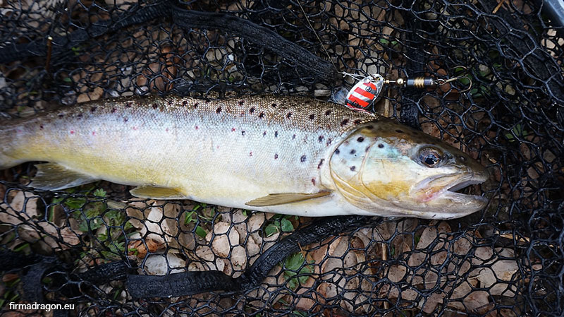 To jedna z przynęt starych jak świat, której jestem wierny po dziś dzień. A w pewnych sytuacjach i okolicznościach wręcz niezastąpiona na łowisku. Na tę przynętę łowiłem swoje pierwsze spinningowe okonie i szczupaki. Na odrzańskich główkach doskonale sprawdzała się podczas polowania na bolenie. Był też czas fascynacji podczas łowienia rzecznych sandaczy. Mój największy kleń (63 cm) i kilka jemu podobnych to również zasługa obrotówki. A jeśli chodzi o łowienie pstrągów i troci, to nie wyobrażam sobie, aby mogło jej zabraknąć w moim arsenale. W każdym momencie prowadzenia obrotówki mam z nią świetny kontakt i doskonale czuję na wędce. Ta przynęta informuje mnie o tym, co się z nią dzieje pod wodą: wyczuwam moment napotkania przeszkody, jak i atak ryby. Każde najmniejsze zakłócenie pracy wirującego skrzydełka nie ujdzie mojej uwadze i jest sygnałem, impulsem do mojej reakcji. Moja koncentracja podczas prowadzenia obrotówki sięga najwyższego poziomu. Uwielbiam ten stan, kiedy w ciszy urokliwego łowiska wszystkie moje zmysły wyłączają się ze świata zewnętrznego by maksymalnie skupić się na prezentacji przynęty. Czasami mam wrażenie, że nie tylko czuję, ale i słyszę pracę obrotówki.