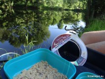 Nad wodę zabrałem mieszankę z serii Quattro na lina i karasia o zapachu wanilii i kozieradki oraz dodatek z serii Elite, oczywiście na te gatunki. Glinianka posiada powierzchnię około 0,75 ha, a więc jest mała. Brzegi są mocno zarośnięte, na dnie zalega duża warstwa mułu, liści oraz zatopionych gałęzi. Maksymalna głębokość wynosi 1,5 metra. W takich warunkach liny się czują doskonale, z pewnością mają pod dodatkiem pożywienia oraz ogrom kryjówek.