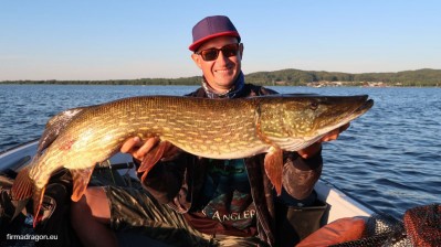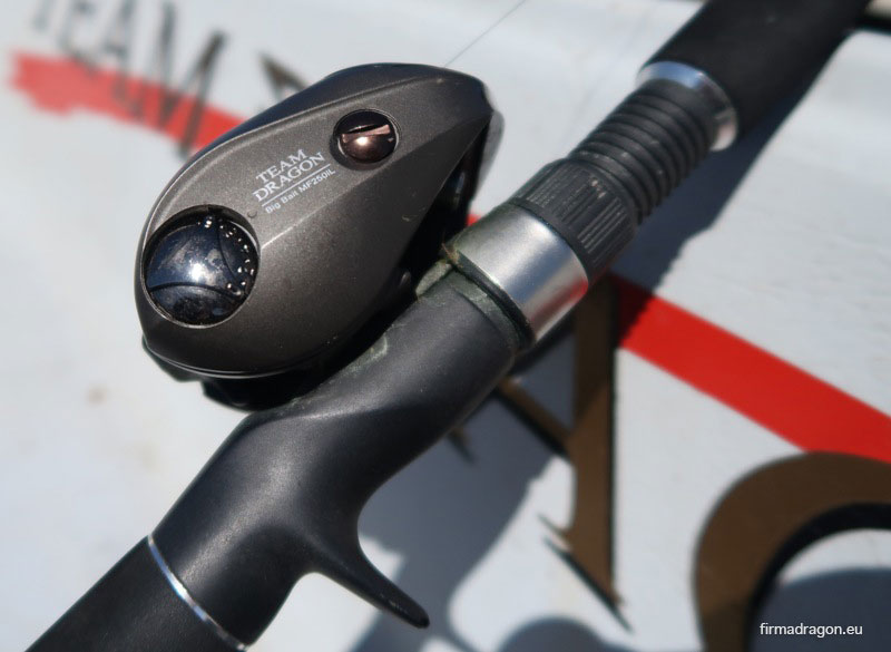 W tym roku łowię na sprawdzoną w ubiegłym sezonie maszynkę, zaprojektowaną specjalnie do łowienia dużymi przynętami, a mianowicie niskoprofilowym Team Dragon Big Bait MF250iL o wzmocnionej konstrukcji obudowy oraz przekładni. To jest niezawodny i niesamowicie trwały multiplikator, dał mi już kilka razy dużo frajdy z holi ogromnych szczupaków z Jeziora Żarnowieckiego, a także podczas pontonowych wypadów na Odrę.