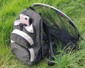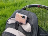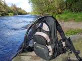 Do plecaka zaczepem magnetycznym przypinam duży podbierak trociowy. Tak umiejscowiony nie przeszkadza w wędkowaniu, a jest zawsze pod ręką.