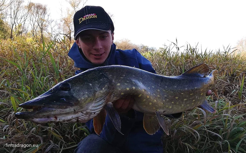 Jesień to moja najlepsza pora 2018 roku; w ciągu 2 tygodni trafiłem na takie ryby, o jakich dużo wędkarzy może marzyć. A są to: sandacz 82 cm, szczupaki 97 cm - 92 cm - 88 cm - 84 cm - 80 cm, boleń 82 cm, sum 160 cm, okoń 44 cm. Takie ryby nie goszczą często na wędce. Nawet u mnie bardzo trudno o takie i jestem mega zadowolony, że większość tych ryb złowiłem dzięki gumom Dragona.