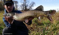 Złowiłem także wiele sandaczy jesienią na wobler Salmo Executor 9 cm, to są rewelacyjne woblery na noc; zarówno na sandacze, jak i bolenie czy szczupaki. Gumy Dragona, na które w tym roku sporo ryb łowiłem to Fatty - mega praca i bardzo mięsista guma, łowiąca zarówno w wodach płynących jak i stojących. Kolejna guma to Lunatic, mój Number One (Numer 1) w przynętach gumowych; to, co ta guma "odwala" w wodzie i jakie ryby wabi, to chyba każdy wie doskonale! Następna to Bandit, również mega guma łowiąca mega szczupaki w wodach stojących tak samo, jak Reno Killer, na którego złowiłem w tym roku okonia 44 cm. Kolejna guma to Chucky, późną jesienią złowiłem na niego dużo sandaczy i szczupaków, może i nie powalały swoją wielkością, ale na pewno dały mi wiele radości. W jesiennych łowach bardzo dużo pomogła mi wędka Dragona, a dokładnie Team Dragon Z-series w jednym kawałku do 42 gramów; to mega spinning, który przetestowałem najpierw na brzanie długości 63 cm, a następnie na siedmiu szczupakach złowionych w 2 godziny; szczupaki mierzyły od 97 cm do 80 cm. To był mój najpiękniejszy dzień, jeśli chodzi o szczupaki.