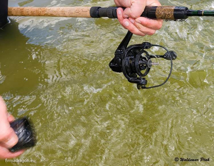 Na uwagę zasługuje też sama duraluminiowa szpula typu long cast (z wyprofilowaną krawędzią) znacznie ułatwiająca oddawanie dalszych rzutów. Ponadto bardzo doceniam idealnie zestrojony system zbijający kabłąk - w środku musi być ukryta jakaś supermocna sprężyna, bo po ponad rocznym użytkowaniu jeszcze nigdy się nie przycięła.