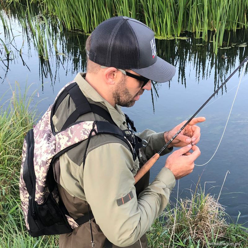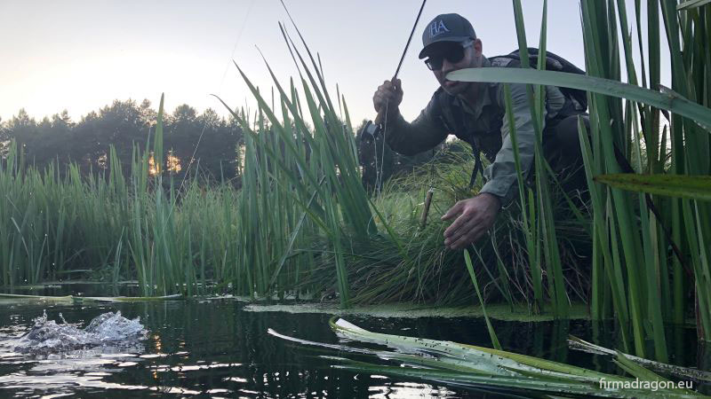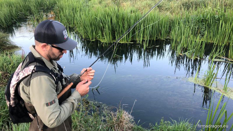 Wędka, którą z zadowoleniem stosuję i która sprawdza się na małych i średnich rzekach to TEAM DRAGON FX w #4 dł. 9', ze stajni Dragona. Blank jest lekki, szybki, świetnie nosi sznur na sporą odległość. Co jest dla mnie najistotniejsze podczas łowienia w małych rzekach - FX jest niesamowicie celna. W blanku wyczuwalny jest spory zapas mocy, czyli muchówka FX umożliwia bardzo skuteczne zacięcie i radzi sobie z naprawdę okazowymi i silnymi rybami. Kolejną istotną zaletą jest progresywne ugięcie, będące niezwykle ważne podczas holu. Podobnie nie do przecenienia jest czułość kija. To naprawdę dobry blank i pozwala na skuteczne łowienie streamerem, mimo że teoretycznie nie jest stworzony do takiego łowienia.