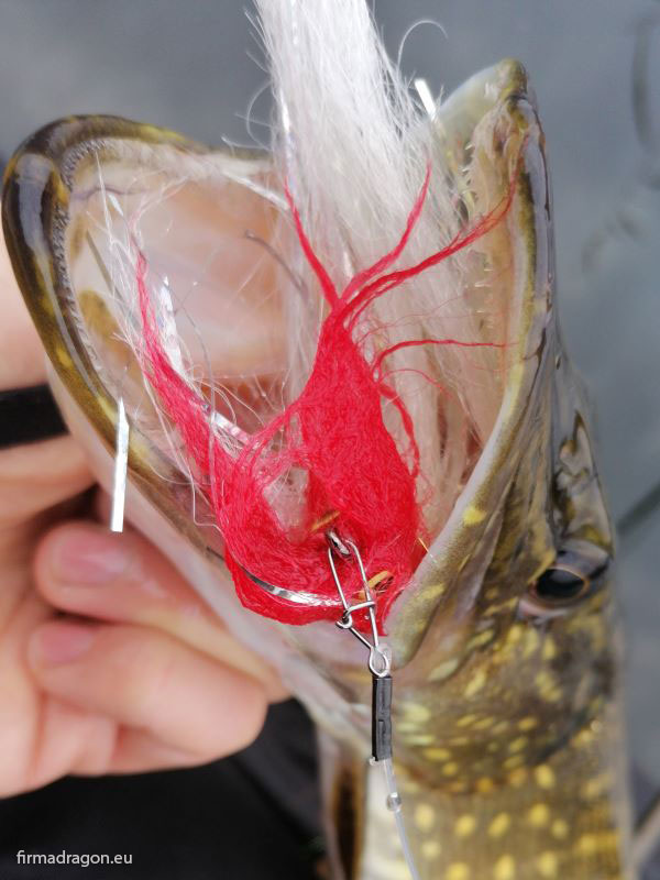 Początkowo miałem pewne obawy. Naczytałem się i nasłuchałem różnych historii o pękaniu z rybą na kiju czy przecinaniu tej linki przez zębiska szczupaków. Ale po paru wyjazdach i kilkudziesięciu wyholowanych rybach, wśród których były też szczupaki niemal metrowe, obawy zupełnie minęły. Oczywiście są różne przypadki, mi potrafił pęknąć tak niby niezawodny przypon z tytanu. Nadmienię, że stosuję wyłącznie prawdziwy, sprawdzony fluorocarbon, który jest dostępny w ofercie Dragona.