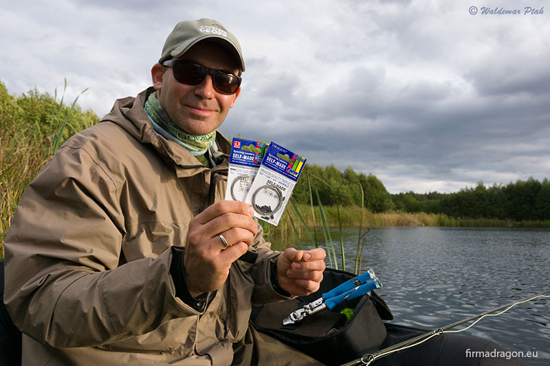 W tym sezonie zacząłem „kombinować” z przyponami, a dokładniej mówiąc zastanawiałem się jak to ulepszyć, jakich użyć materiałów itd. Kupne tzw. gotowe przypony nie dawały mi pełnej satysfakcji, zwłaszcza gdy chodzi o ich długość – zawsze potrzebowałem czegoś o niestandardowej długości. Świetnym rozwiązaniem dla mnie są zestawy SELF-MADE, w których otrzymujemy 2,5 metra wybranej linki (przyponowej) i 25 idealnie dopasowanych pod kątem średnicy tulejek. Dodatkowo otrzymałem od Dragona (w ramach współpracy autorskiej i testerskiej) bardzo profesjonalną zaciskarkę do tulejek podczas robienia przyponów, amerykańskiej firmy CUDA.