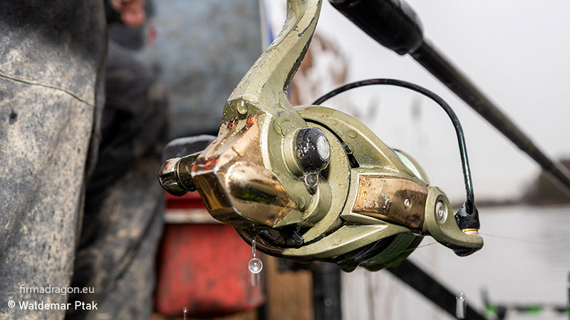 Ostatnia z różnic ukryta jest już w wewnątrz korpusu. Najistotniejszą, która znacząco pozwoliła wpłynąć na cenę kołowrotka, jest zrezygnowanie z przekładni ślimakowej w znaczeniu systemu oscylacji szpuli. Mimo tego zabiegu nie zauważyłem, aby kołowrotek gorzej układał żyłkę. Być może różnica byłaby widoczna w momencie, gdybym korzystał z plecionki lub żyłek o mniejszej średnicy. Kołowrotek testowałem mając na szpuli żyłkę o średnicy 0,20 mm.