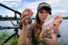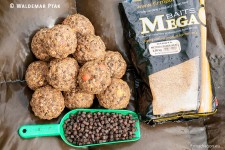 Jednak tak przygotowany pellet – tak, czyli odpowiednio nawilżony - może się nam przydać także do oklejania ciężarka karpiowego. Można go bez problemu okleić dookoła, wbić haczyk w ubitą masę i zarzucić w pożądane miejsce bez obawy o splątanie się przyponu, zwłaszcza tego stworzonego z miękkiej plecionki. To rozwiązanie najlepiej sprawdza się na ciężarkach przelotowych, nie tych umieszczanych na bezpiecznym klipsie lub na końcu zestawu. Trzecią możliwością wykorzystania przygotowanego pelletu jest formowanie kul zanętowych i umieszczanie ich w naszym łowisku za pomocą procy lub ręki. To zastosowanie ma niestety duży minus – ciężko jest daleko wystrzelić tak przygotowaną kulę. Jest to więc alternatywa, z której można korzystać łowiąc na niewielkiej odległości od brzegu. Kolejnym sposobem, dość oczywistym dla karpiarzy, jest wykorzystanie pelletu jako składnika mieszanki umieszczanej w siateczce bądź w worku PVA. Możemy tworzyć różnorodne mieszanki, dopasowane do naszych potrzeb. Jednak stworzenie ładunku w siatce PVA może ograniczyć nasz zasięg rzutu. Jednak, jeżeli zastosujemy worek PVA zamiast siatki i umieścimy w nim w nim również ciężarek, będziemy mogli osiągnąć większy dystans rzutu. Należy pamiętać, że worek rozpuszcza się wolniej od siatki – należy brać to pod uwagę zwłaszcza, jeżeli łowimy w zimnej wodzie. Ostatnia stosowana przeze mnie alternatywa na wykorzystanie pelletu raczej nikogo nie zaskoczy – jest to wywózka. Mówiąc wywózka mam na myśli wywożenie zestawów modelem zdalnie sterowanym. Nie przygotowuję pelletu przed umieszczeniem go w łowisku - wsypuję go do komory łódki bezpośrednio z opakowania, wraz z zestawem końcowym. Nęcę wtedy trochę większy obszar niż w przypadku zastosowania materiałów PVA.